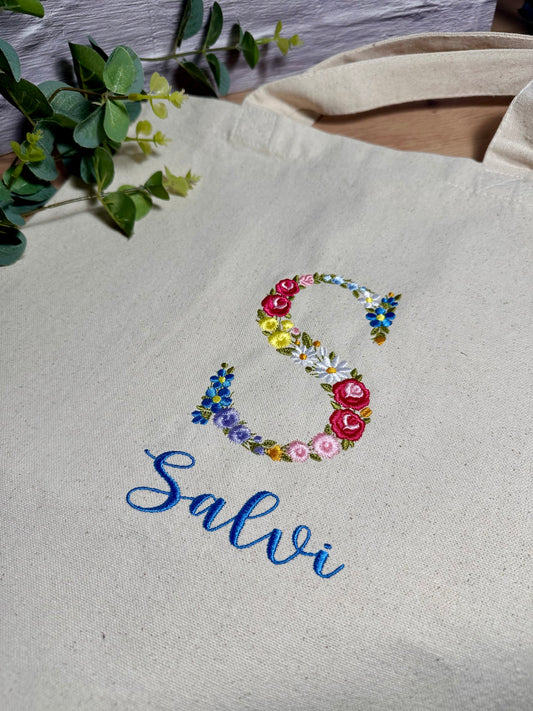 Bolsa con asas bordada con inicial