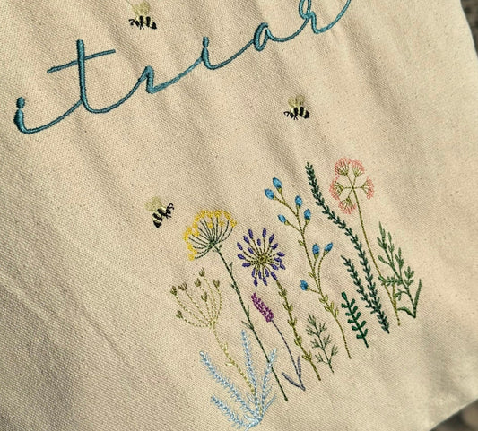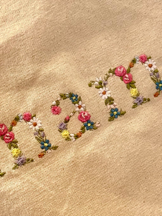 Bolsa con asas bordada con flores