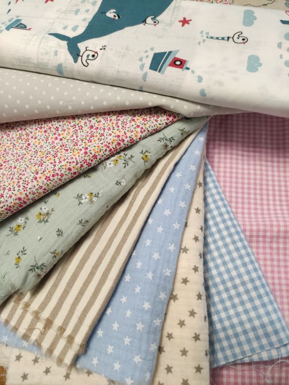 Different fabric prints to embroider the baby's name.