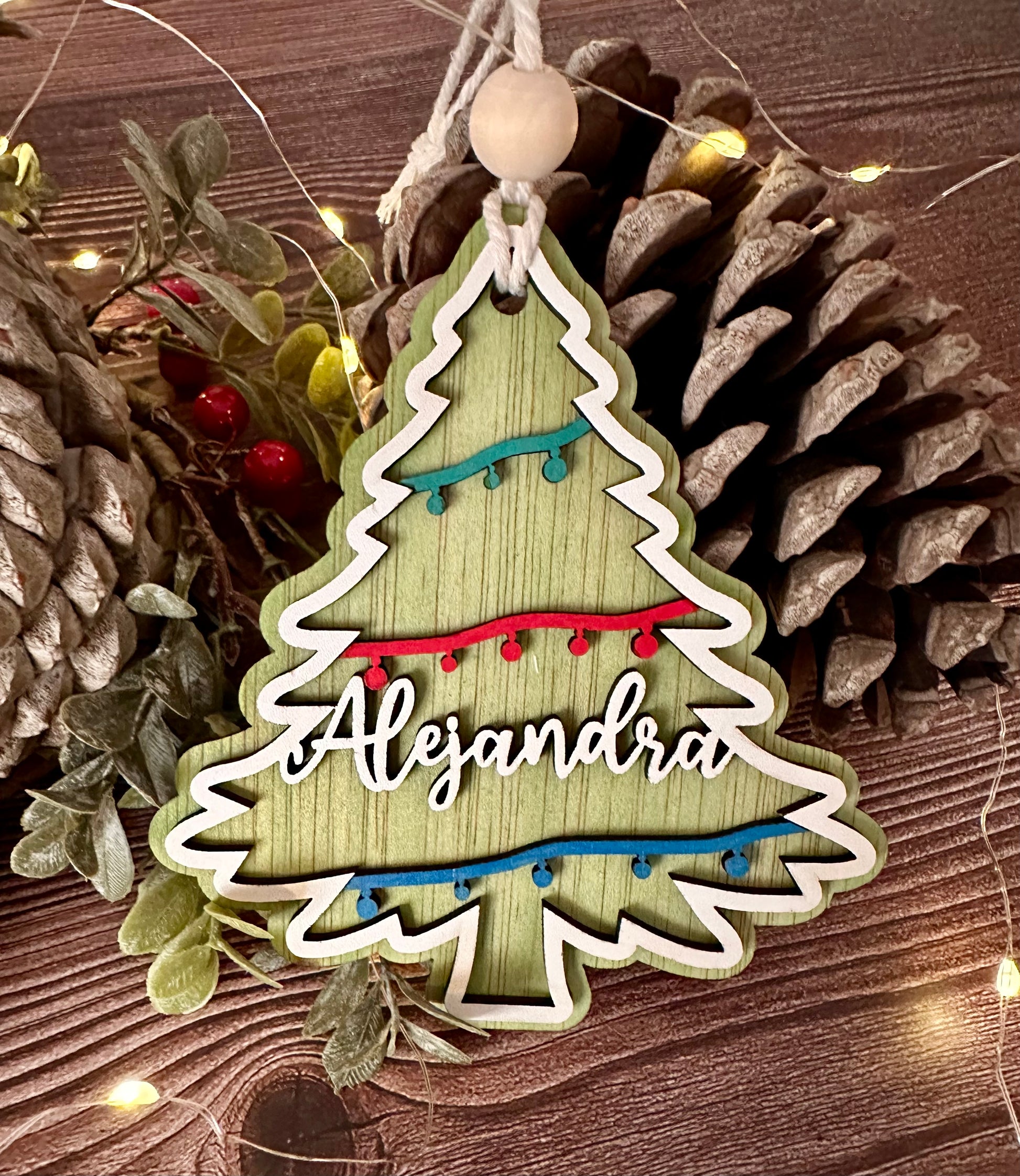 Christmas ball. Fir model, personalized with name.