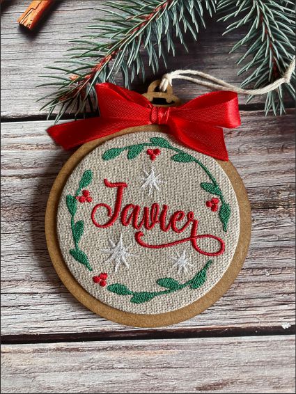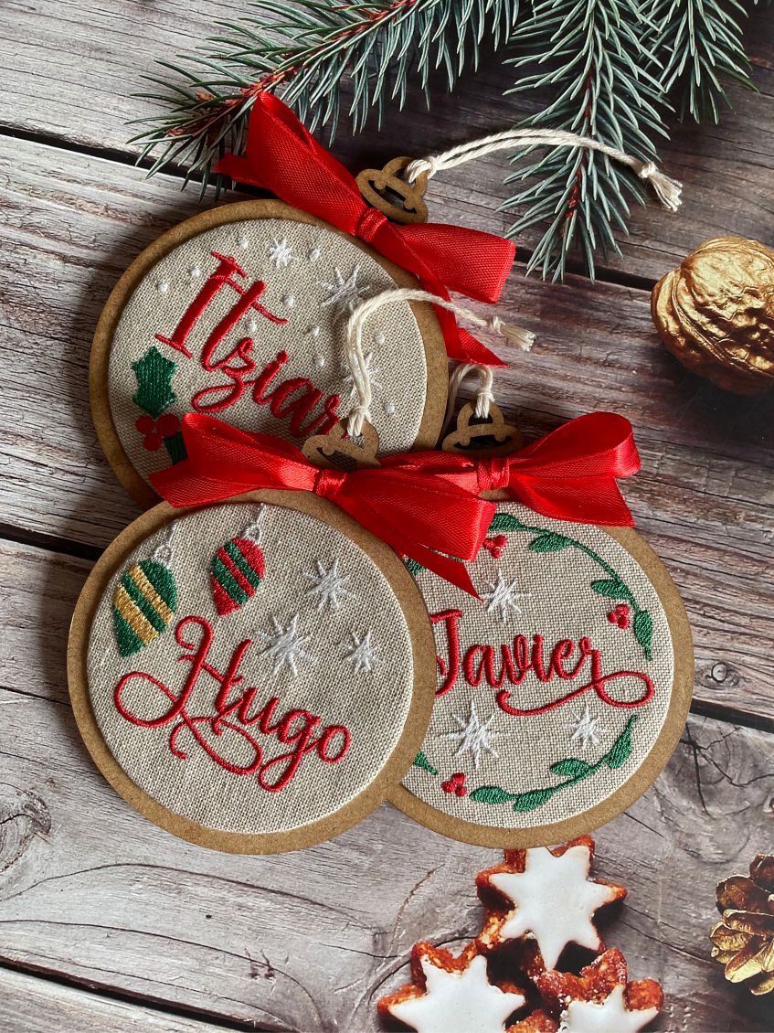 Christmas ball with embroidered Christmas motif to personalize with the name.