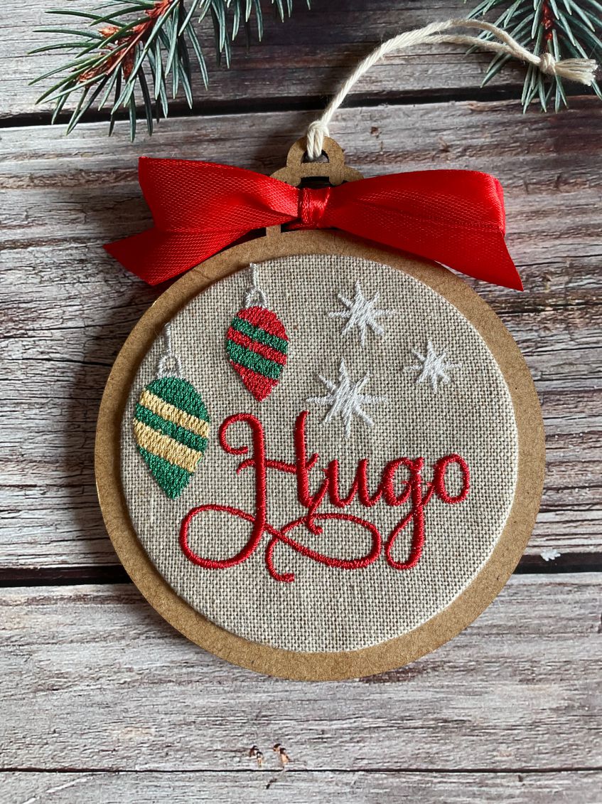 Christmas ball with embroidered Christmas motif to personalize with the name.